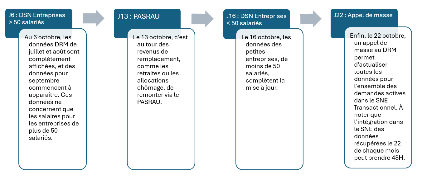 Concrètement, les données DRM couvrent toujours les trois derniers mois, de M-1 à M-3.