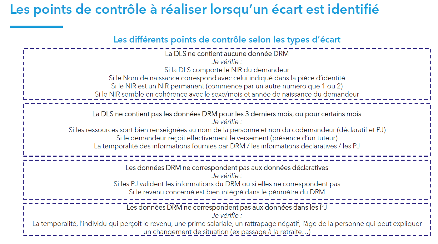 > Après avoir traité l’intégralité de ces points de contrôle, il est recommandé de contacter le demandeur pour clarifier la situation. Si le doute persiste, il convient ensuite de remonter l’information au gestionnaire territorial, qui remontera la situation au support de niveau 2.
